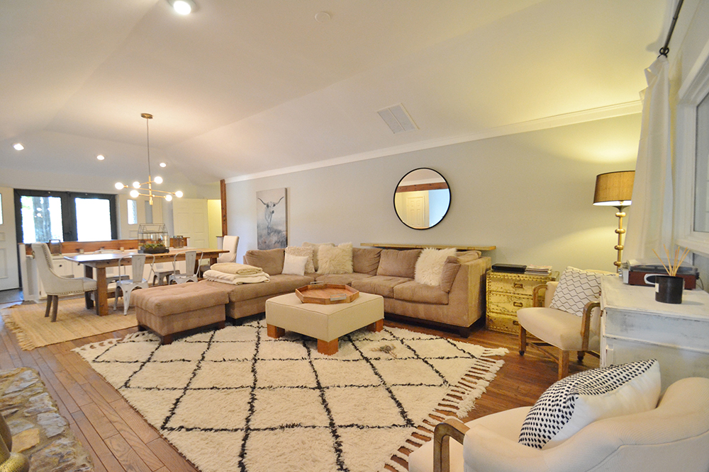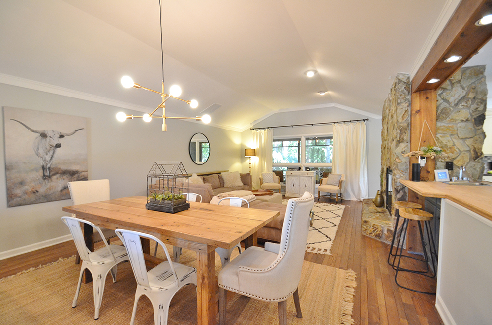 Amazing stone & wood made modern with crisp whites, grays + golds. This beautifully updated home at 3916 Woodfox Drive offers vaulted ceilings, tons of natural light, and an open floorplan for perfect flow. Kitchen boasts stainless steel, granite, and updated cabinetry located off a cozy breakfast nook.